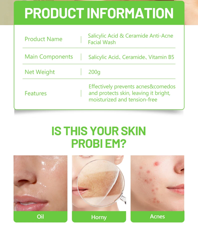 Disaar Anti-Acne Faceial Wash 200g Salicylic Acid Ceramide Vitamin B5 Essence Face Clean Pore Cleansing Moisturizing Exfoliating