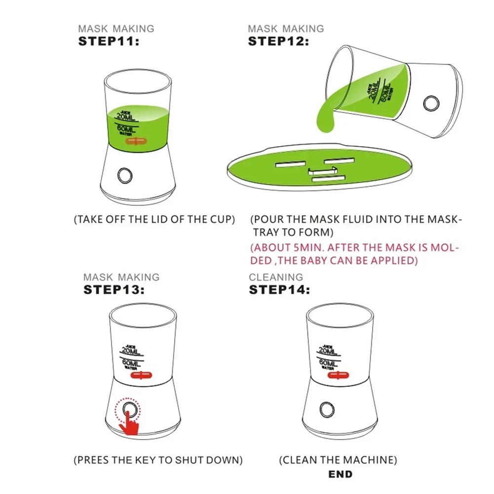 6. The machine has an automatic timing function. 3-4 minutes after it is turned on, it will automatically stop working and send out music to remind you that the mask is made.