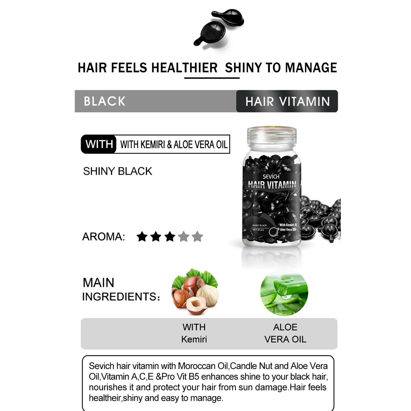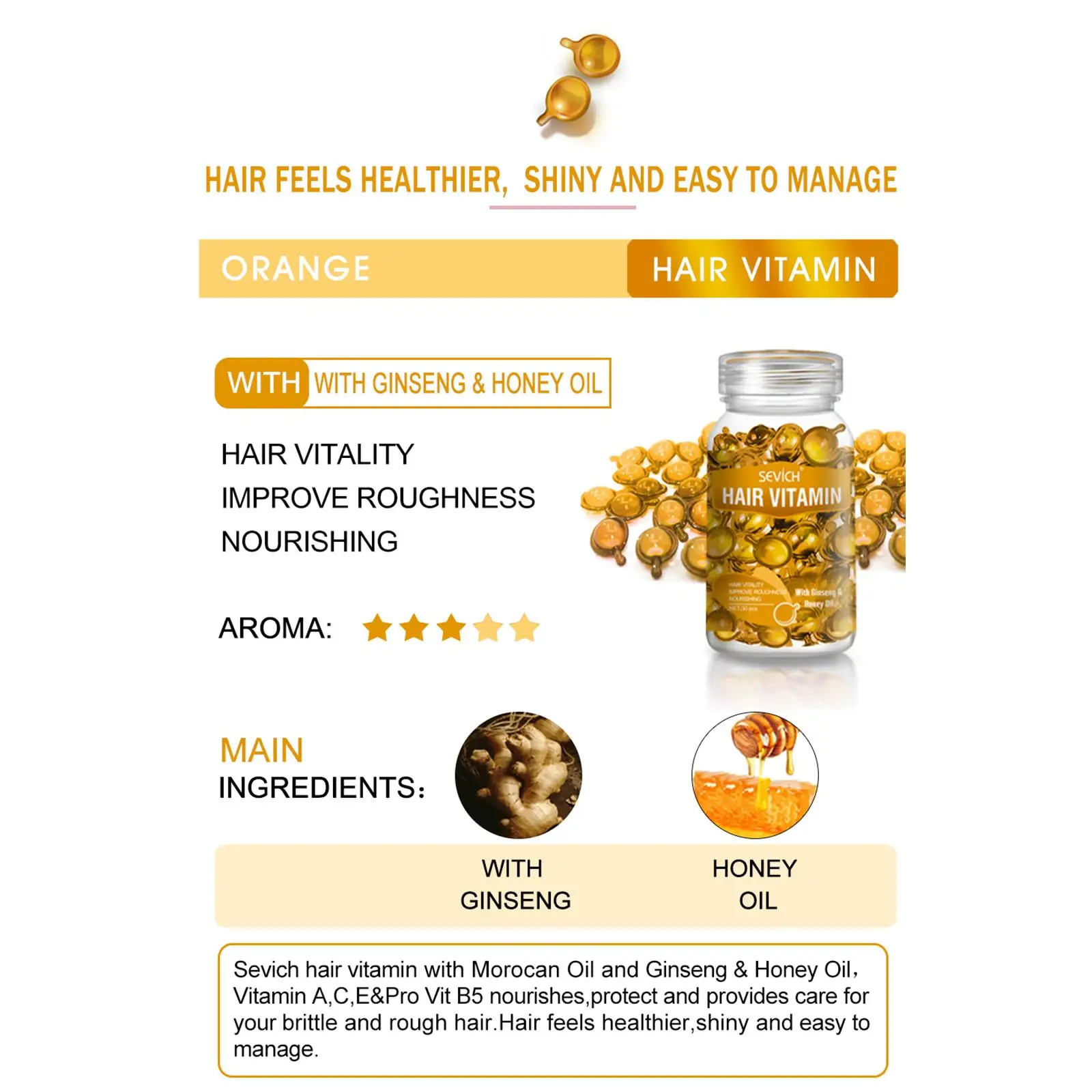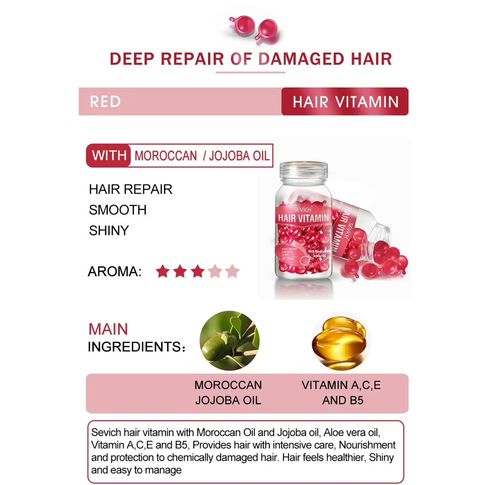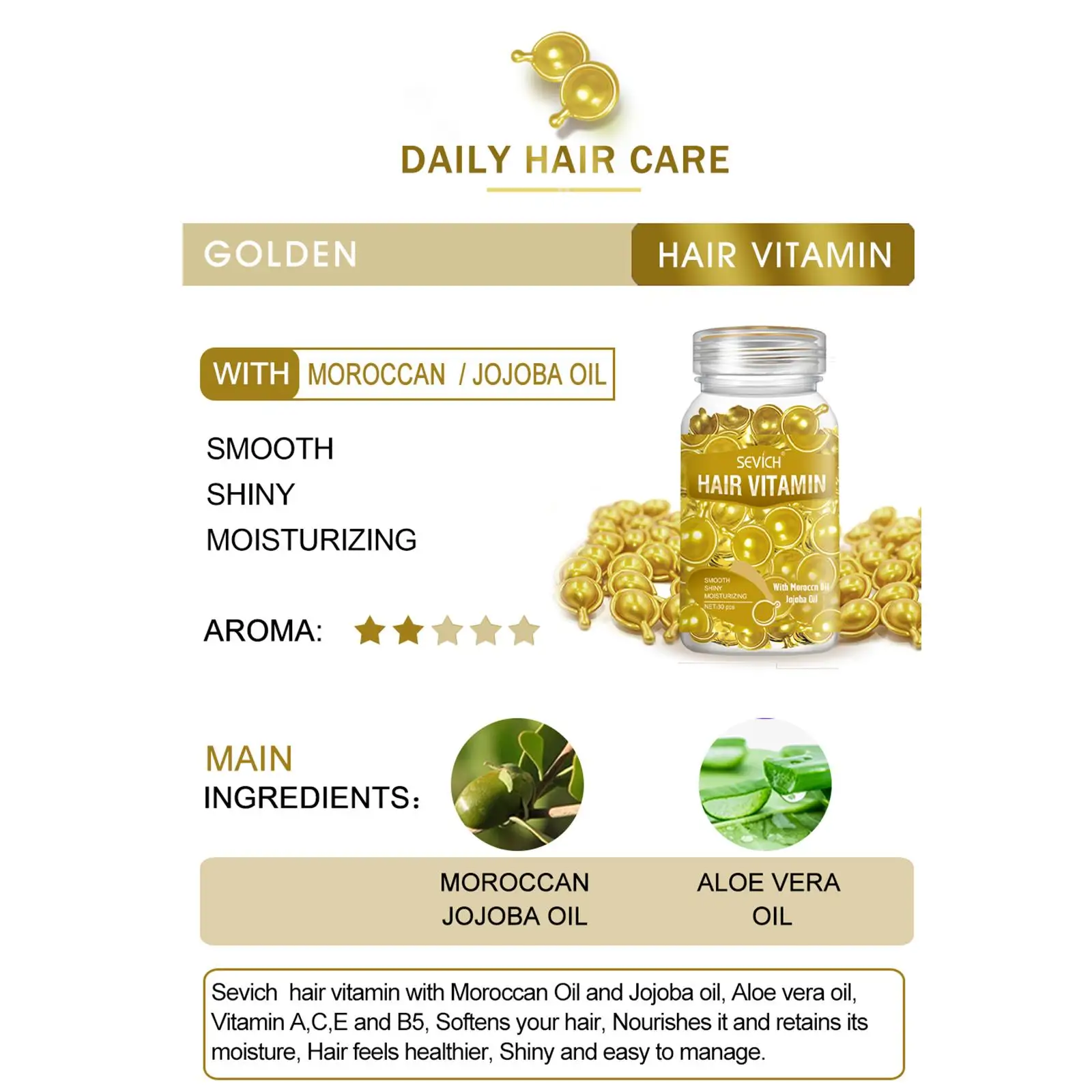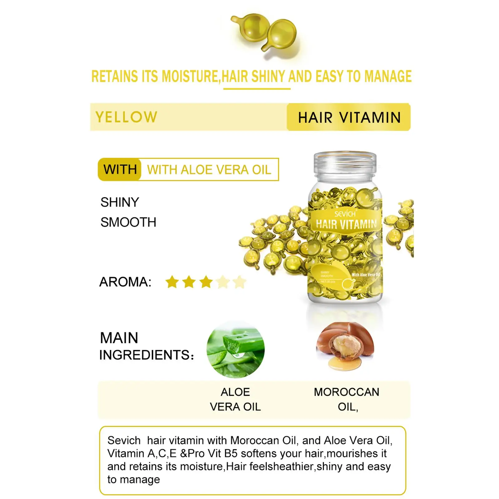 Sevich Smooth Silky Hair Vitamin Capsule Keratin Complex Oil Hair Care Repair Damaged Hair Serum Anti-Loss Moroccan Hair Oil