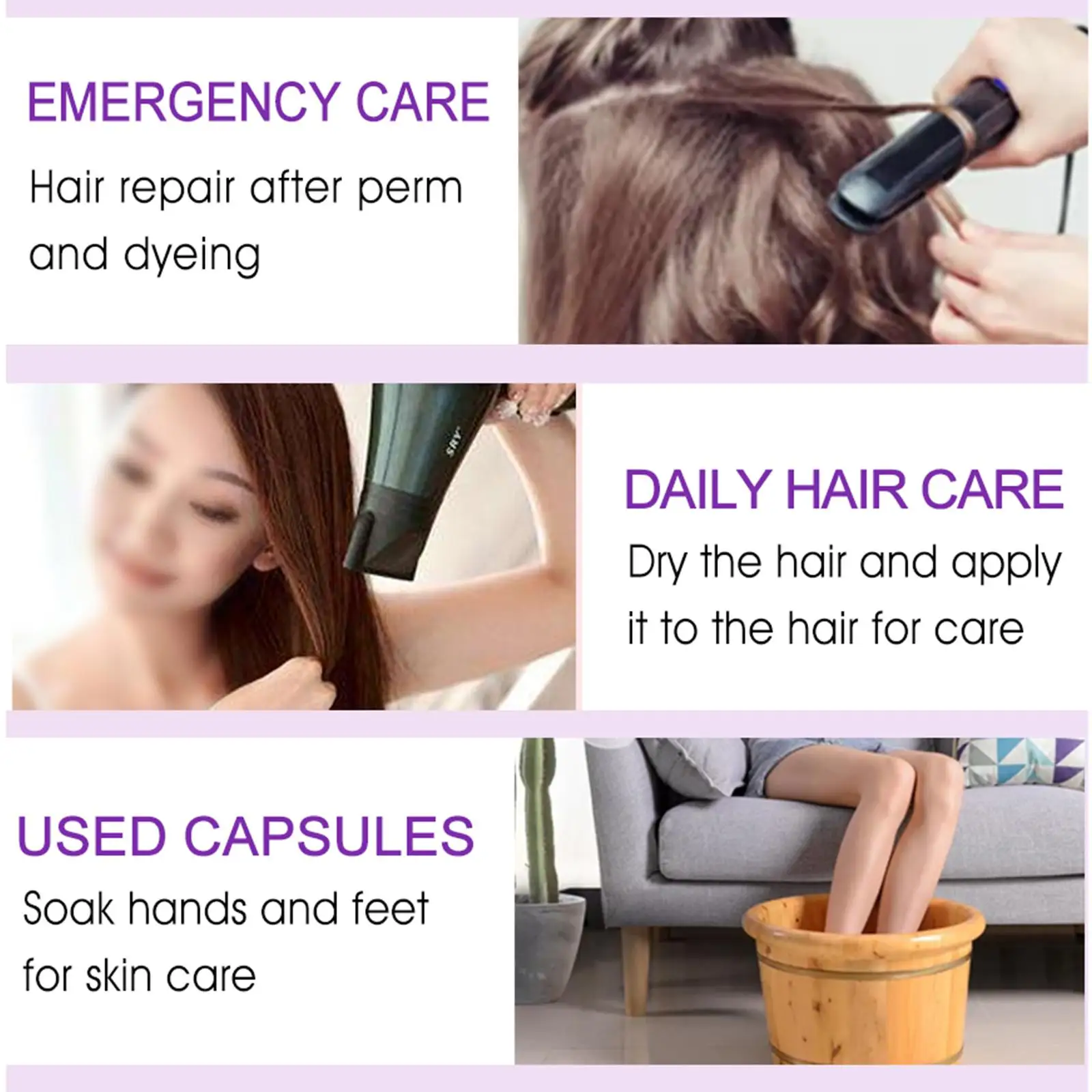 2. Use it on shampoo and semi-dry hair. Apply evenly on the hair and avoid the scalp.