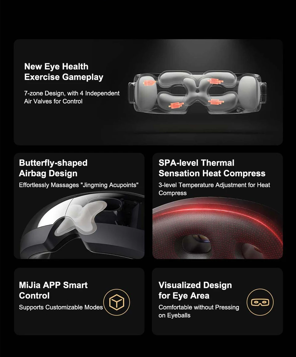 • Intelligent Eye Massage :The Xiaomi Mijia Intelligent Eye Massager is designed to provide targeted and effective massage to the eyes, reducing fatigue and strain.